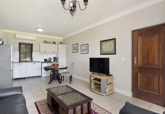 Mit einem Wohnzimmer mit offenem Schnitt, einem Essbereich und einer Küche, die auf eine geräumige Terrasse führt, wo Sie ein Braai genießen können, bietet dieses Apartment mit Blick auf die Berge seinen Besuchern eine gemütliche Atmosphäre.