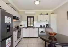 Es gibt einen Esstisch in der Küche, der Platz für zwei Personen bietet und komplett für Ihre Selbstversorgung ausgestattet ist. Das Wohnzimmer verfügt über einen Fernseher mit DStv-Zugang und WLAN ist verfügbar, sodass Sie mit Ihren Lieben eine entspannte Nacht im Haus verbringen können.