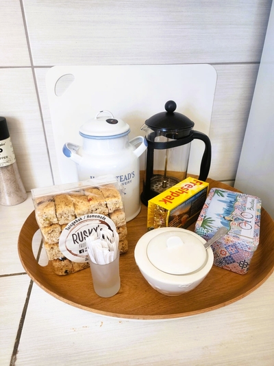 Das Cottage verfügt über eine voll ausgestattete Küche und einen Wohnbereich mit Innenkamin und Grill, der eine warme und einladende Atmosphäre bietet. Draußen können die Gäste im Whirlpool entspannen, sich um das Boma-Feuer versammeln oder die Ruhe der Hängematte und des Hängesessels genießen.