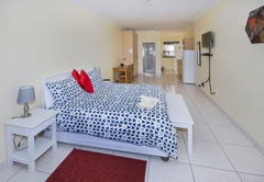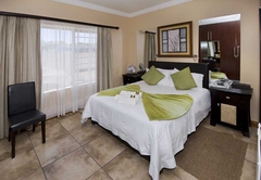 The Executive Rooms are beautifully furnished room with an en-suite bathroom. The room is furnished with a double bed (please request twin beds after confirming your booking, if required). The en-suite bathroom is equipped with a shower, hand basin and toilet. This room has a coffee and tea station and TV with DSTV. Other facilities include a bar fridge, fan / heater, safe, hair dryer and WI-FI.