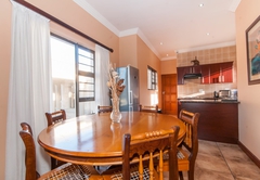 Beautifully furnished and fully equipped suite consisting of two bedrooms with en-suite bathrooms. It also has its own private entrance with kitchen, dining area and TV/lounge area. The Family unit also has DSTV in the lounge and bedrooms. Facilities include TV with DStv, fan / heater, safe and a hair dryer. The suite also offers a portioned off room with a single bed and an open plan lounge/kitchen/dining room. This suite is situated in the lodge and has its own entrance as well as secure parking.