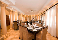 The Sea View Rooms are beautifully furnished rooms with sea view and full en-suite bathroom. The rooms are furnished with a Queen-size bed and the en-suite bathroom is equipped with hand basin, toilet, bath tub and separate shower. Other facilities include a bar fridge, TV with DSTV, fan / heater, safe hair dryer, seating area and coffee/tea making facilities and WiFi.