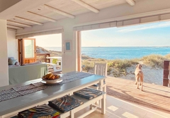Hospital Bay Beach House wurde entworfen, um die Lage zu nutzen; die Glasschiebetüren führen in voller Länge auf ein Sonnendeck und von dort auf den Strand hinunter. Das gesamte Haus einschließlich der Schlafzimmer öffnet sich und bietet direkten Zugang zu den Terrassen und den Dünen.