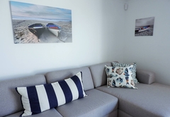 Das Deck ist mit Stühlen und Sonnenliegen ausgestattet. Mit Kissen und Badetüchern inklusive, sowie ein paar Spielsachen für Kinder zum Spielen im Sand.