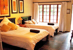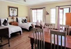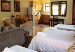 The Two-Bedroom Garden Cottage comprises of two bedrooms and a lounge, TV with DStv, dining room, kitchen and full bathroom. The bedrooms are furnished with one double bed and the second bedroom has two single beds.