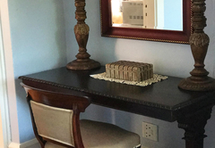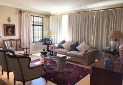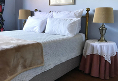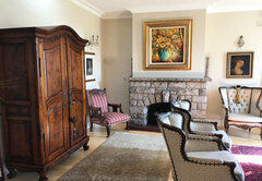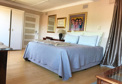 The Queen Room is furnished with a Queen-size bed and has an en-suite bathroom with a shower. This large room in the main house has a private lounge. Room facilities include air-conditioning, a fridge, microwave oven, toaster, kettle, coffee and tea station, ironing facilities, DStv (Hotel package) and free Wi-Fi. There is a spacious, private balcony, a swimming pool, landscaped garden, braai facilities and on-site parking. The rooms share a communal kitchen.