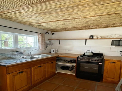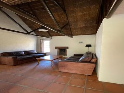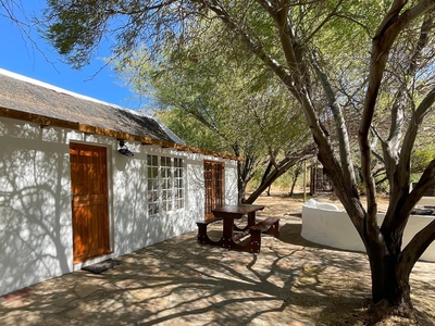 This spacious open-plan cottage sleeps up to four guests and offers a warm, comfortable atmosphere ideal for a peaceful escape. The ground floor features a king-size bed, while a loft space—accessible by ladder—accommodates two single beds, serving as a second sleeping area. The cottage includes a well-equipped kitchenette, a cosy sitting area with an indoor fireplace, and a bathroom with a shower. Step outside to enjoy a private patio, a plunge pool, and a dedicated braai area overlooking a seasonal river. Additional amenities include outdoor dining furniture, heating, and scenic views of the surrounding mountains and natural landmarks. The unit is non-smoking.