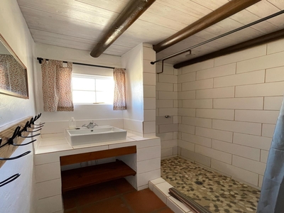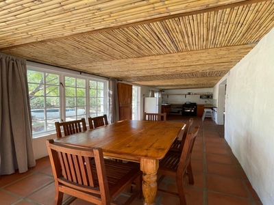 Figtree Farmhouse is a private, off-grid retreat located on a small ridge overlooking the Biedouw River at Enjo Nature Farm. Accommodating up to six guests, the house features a spacious open-plan kitchen, lounge, and dining area, complete with a cozy fireplace. Outdoor amenities include a braai/barbecue area, firepit, patio, terrace, garden, and outdoor dining space, as well as a plunge pool and comfortable outdoor furniture for relaxing in the natural surroundings. Guests can enjoy both mountain and river views, along with modern conveniences such as Wi-Fi, a refrigerator, full kitchen with oven, bathroom amenities, and a shower-only bathroom. The farmhouse is non-smoking, making it a peaceful and clean getaway into nature.