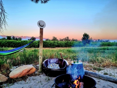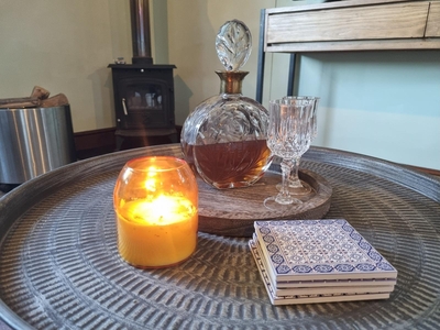 This cosy little cabin rests in a wildflower meadow surrounded by whispering pines, with tranquil views over the apple and pear orchards. Designed as an open-plan retreat for two, it features a comfortable bedroom and sitting area complete with a fireplace, perfect for unwinding after a day in nature.
