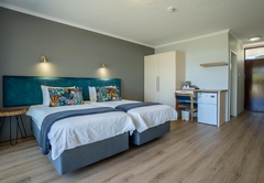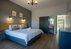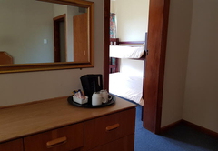 These rooms consists out of the main bedroom which has a double bed and a small inter-leading bedroom that has one single bed and a double bunk bed. This room has one en-suite bathroom. The rooms are equipped with a TV and tea / coffee making facilities.
