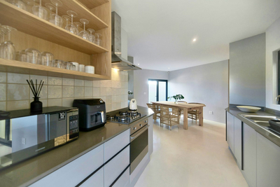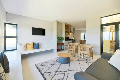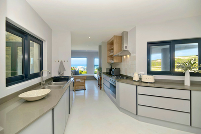 Fynbos Hill has two expansive bedrooms each furnished with a lavish Queen-size bed. A promise of luxury is woven into every detail, as the soft embrace of Egyptian cotton linen ensures a restful stay. The two bathrooms are a retreat in themselves, offering modern amenities with a shower, toilet, and basin. Culinary delights take centre stage within the well-appointed kitchen, adorned with premier Italian appliances - a plethora that includes a gas hob, electric oven, integrated dishwasher, large fridge, and freezer - all orchestrated to compose a symphony of comfort for your self-catering journey. Should you desire, the option of washing and laundry services is at your fingertips. The living space unfolds as a canvas of uninterrupted sea views, inviting you to recline and revel in the tranquillity of the horizon. Lounge in comfort with a smart TV at your service, complemented by limitless Fibre Wi-Fi, catering to your entertainment needs. The allure of shared moments emerges at the elegant 6-seater dining table, thoughtfully placed in proximity to an indoor braai - a confluence of indulgence and conviviality. The home has a full solar system. Secure parking is available on site.