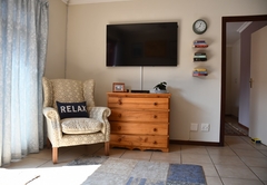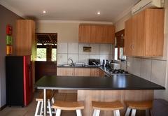 Die Küche ist mit einem Kühlschrank (nur kleine Gefriertruhe), Gasherd, Elektroherd, Mikrowelle, Wasserkocher und Toaster ausgestattet. Alle Besteck und Geschirr ist vorhanden. Die klimatisierte Lounge verfügt über einen 55-Zoll-HD-Flachbild-TV mit vollem DSTV-Service.