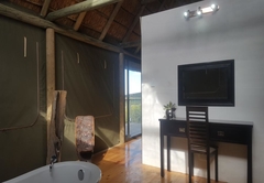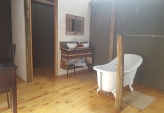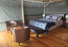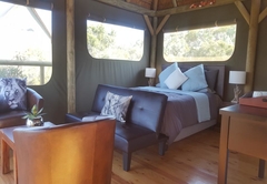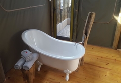 Free standing luxury tented unit, for Glamping. Own private viewing deck. Own private outdoor shower. Indoors Victorian bath. Tent overlooks wild animals grazing closely. In the heart of nature, enjoy and relax.