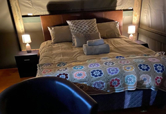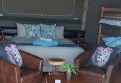 Free standing luxury tented unit, AKA Glamping. Own private viewing deck. Own private outdoor shower. Private indoor bath. Double bed with double bunk beds. Tent overlooks wild animals grazing closely. In the heart of nature, enjoy and relax.