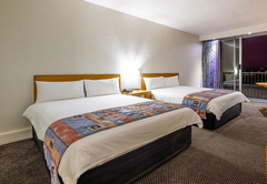 The Twin Room is furnished with two double beds. The en-suite bathroom is fitted with a shower, toilet and basin. Each room has tea / coffee making facilities, a hairdryer, TV, air-conditioning, a desk, fridge and bathroom amenities. A large pool, gym and safe parking are available to all guests.