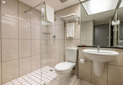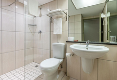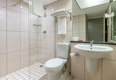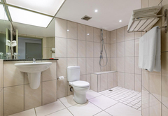 Wheelchair Friendly Room is furnished with a double bed. The en-suite bathroom is fitted with a roll-in shower, toilet and basin. Each room has tea / coffee making facilities, a hairdryer, TV, air-conditioning, a desk, fridge and bathroom amenities. A large pool, gym and safe parking are available to all guests.