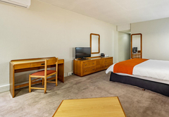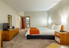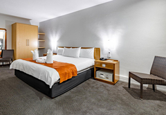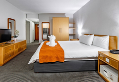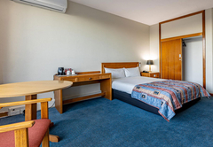 King Leisure Room is furnished with an extra length King-size bed. The en-suite bathroom is fitted with a shower, toilet and basin. Each room has tea / coffee making facilities, a hairdryer, TV, air-conditioning, a desk, fridge and bathroom amenities. A large pool, gym and safe parking are available to all guests.