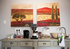 Luxury suite with private entrance and private patio, air-cons, en-suite bathroom, with shower and bath, TV with personal DSTV decoder, kitchenette, free high speed Wi-Fi and safe off road parking. Includes a continental breakfast in room.
