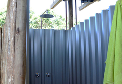 Die Native American Tipi Zelte teilen sich ein Badezimmer mit Dusche, WC und Waschbecken. Die Abenteuerzelte verfügen über ein eigenes, offenem Badezimmer, das aus einer Dusche besteht. Die Campingorte nutzen einen Waschblock mit zwei Duschen, Toiletten und Becken.