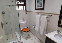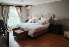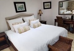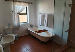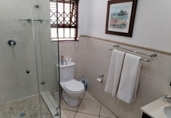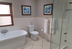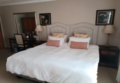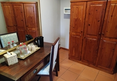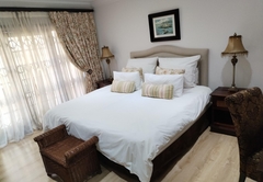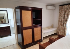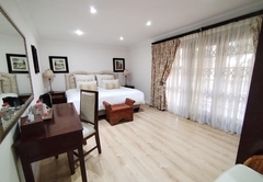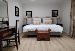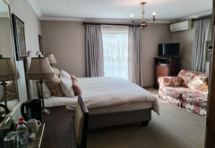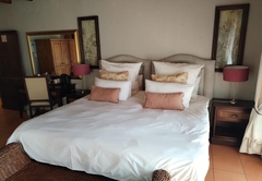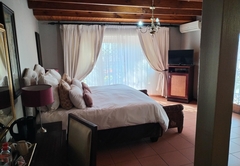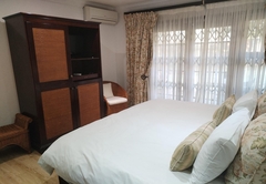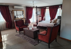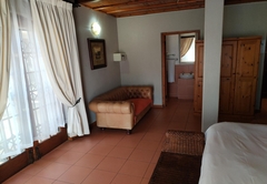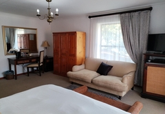 The Family Suite consists of a cosy private lounge and two bedrooms. One bedroom is furnished with a double bed and the other bedroom has two single beds. Each room has its own en-suite bathroom - the master bathroom is fitted with a bath and shower and the second bathroom is fitted with a shower. The suite includes TV with DSTV, free WiFi, a safe, a minibar fridge which can be stocked upon request and air-conditioning. Coffee and tea trays are available in the room. A scrumptious breakfast is included.