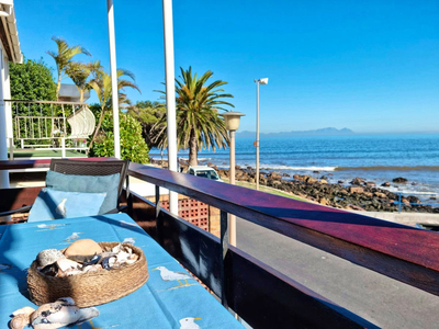 Huisie Oppie Beach has four bedrooms. There are three upstairs bedrooms furnished with double beds. Two of these rooms have an en-suite bathroom fitted with a shower. The fourth bedroom is off the outside courtyard with easy access from the main house. This room has two single beds and an en-suite bathroom fitted with a shower. There is also a family bathroom with bath, basin and shower with a washing machine and a separate guest toilet on the living level. Bedding and bath towels are provided. Please bring your own swimming towels. The kitchen has a stove, fridge/freezer, microwave oven and a dishwasher, as well as ample cutlery, crockery and cookware. Meals can be enjoyed at a big dining table just off the kitchen. Downstairs offers a spacious air-conditioned living room with large sliding doors that open onto your shaded and comfortably furnished veranda. The lounge has a flat screen TV with DStv Now and Netflix. A radio, an ice machine, and a bar fridge are all in this room for your enjoyment. Free Wi-Fi is also provided. A braai (BBQ) area can be found in a wind protected cosy garden at the back of the house. There is a double garage on the property with extra parking for two vehicles. (Please note that there are height restrictions in the garage for recreational vehicles).