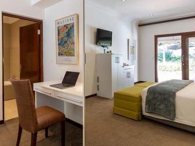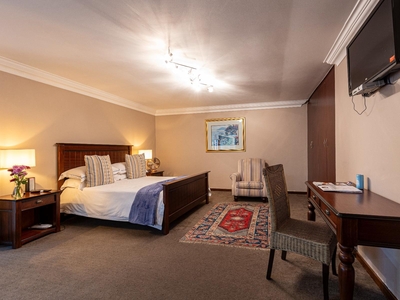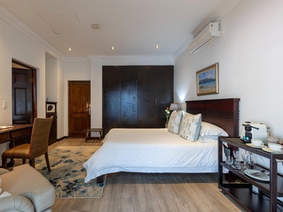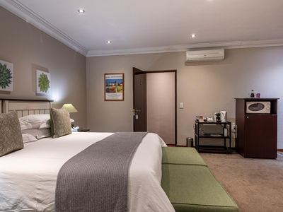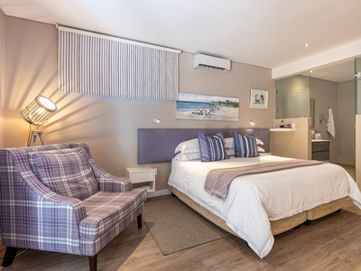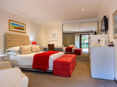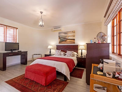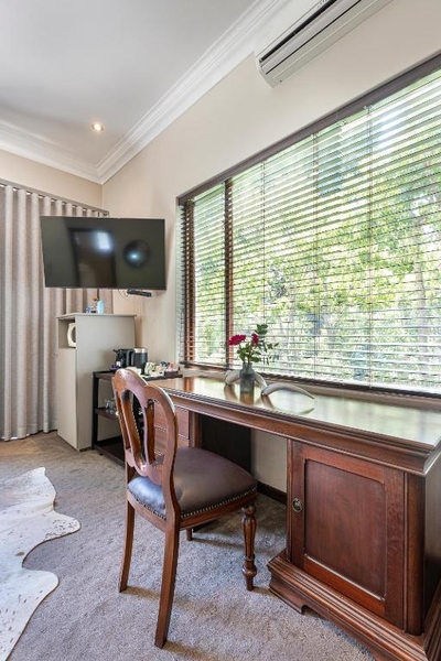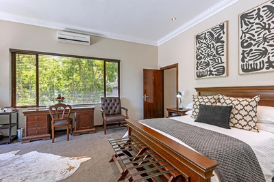 This air-conditioned luxury room is furnished with a queen size bed. Private outside entrance on patio. Luxury en-suite bathroom with separate walk in shower. Other luxuries include Egyptian cotton linen and Turkish towels. Microwave, TV, safe, bar fridge, hairdryer, iron and ironing board. Free wi-fi.