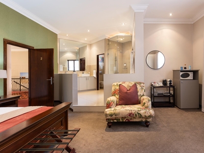 Family Room 9 is a large air-conditioned room with a Queen bed and double sleeper couch. The bathroom with shower and separate bath. Other luxuries include Egyptian cotton linen, superb Turkish towels. Private entrance. Microwave, TV, safe, bar fridge, hairdryer, iron and ironing board. Free wi-fi.