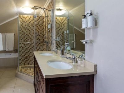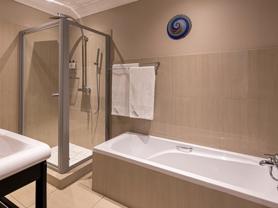 • En-suite Badezimmer mit begehbarer Dusche und Badewanne