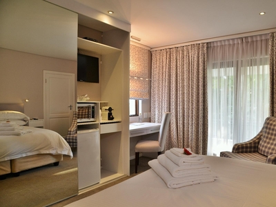 This standard twin or double room is an upstairs, air-conditioned room, with a king size bed (can be converted to twin beds on request. Please specify this after you confirm your booking). En-suite bathroom with separate walk in shower and a bath and double vanities. Other luxuries include Egyptian cotton linen and Turkish towels. Microwave, TV, safe, bar fridge, hairdryer, iron and ironing board. Free wi-fi.