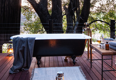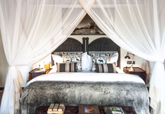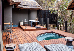 Individual thatched suites, screened by lush trees and reed walls, assuring guests utmost luxurious privacy, creating an exceptional experience of gracious old world elegance surrounded by unspoilt wilderness. Each suite, with queen or twin beds enveloped in a canopy of voluptuous white netting, has its own personal “sala” (thatched viewing deck), plunge pool, romantic victorian ball and claw bath, his and her vanities and outdoor shower. The suites have been built overlooking the rivers and offer breath-taking river bed frontage, bushveld vistas and game viewing. Each suite is also fully equipped with five star amenities such as air-conditioning, fans, tea and coffee making facilities, mini bar and digital safe. Rates are inclusive of two game drives per day, one in the late afternoon and one early in the morning, guided wilderness walks, all meals including High Tea before the late afternoon game drive and a unique Boma dinner experience, a selection of house beverages and game drives beverages.