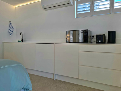 Designed to accommodate up to two guests, this open-plan, air-conditioned unit features a king-size bed and an en-suite bathroom complete with a shower, toilet, and basin. Quality linen and bath towels are provided for guests' convenience.