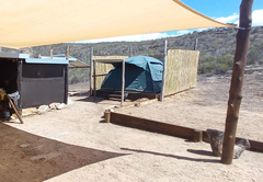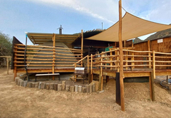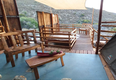 Protea odge offers a unique experience for a camping feeling in absolute style. Comfortably furnished for four guests, the lodge offers two tents furnished with Queen-size beds, which share a bathroom fitted with a shower, toilet and basin. The kitchenette is equipped with a gas stove, fridge and indoor braai area. The unit opens onto a deck with a wood fire warmed sit down pool which enjoys views of the surroundings.