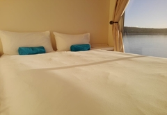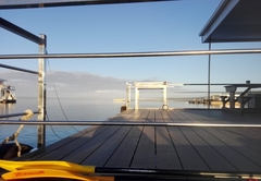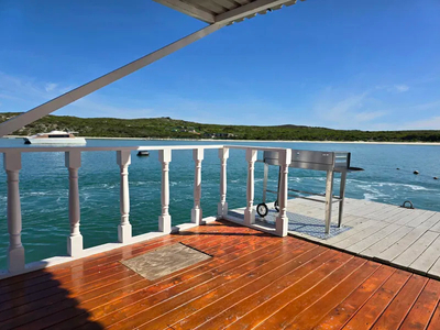 The Serenity House boat can accommodate 4 guests. It consists of two rooms each with a double bed. In the lounge you will find a couch in front of the fire place. Fully equipped open plan kitchen. The lounge has a big window door to not spoil your views of the lagoon that can open the full length of the wall. Thus creating a beautiful space of the lounge running on to the deck. The Deck has your Braai and Table. So enjoy your braai while keeping an eye on the kids as they splash around.