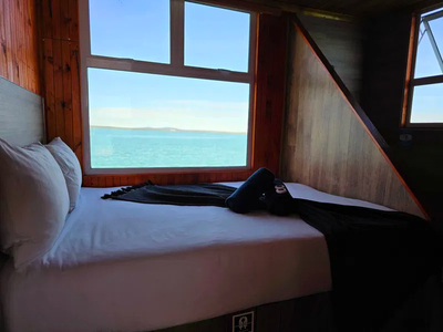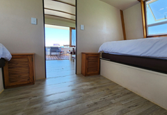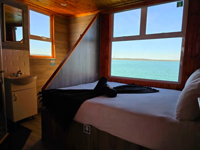 The Larus offers a well-equipped open-plan kitchen and dining area, complete with a braai facility—perfect for relaxed, home-style meals. The main cabin is furnished with a queen-size bed, while the second cabin features a comfortable bunk bed suitable for two guests. A third cabin provides flexible sleeping arrangements with removable mattresses, also accommodating two.