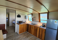 This non-smoking houseboat features a comfortable sitting area and a dining table positioned to make the most of the stunning sea and ocean views. Guests can enjoy the convenience of a well-equipped kitchen, which includes a refrigerator, microwave, coffee and tea facilities, a two-plate stove, and all the essentials for light self-catering. The bathroom is fitted with a shower and complimentary amenities for added comfort.