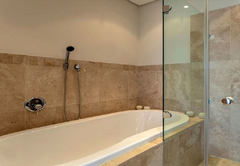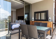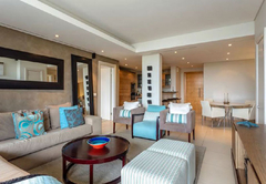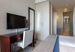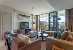 Kylemore 302 is air conditioned and has two bedrooms. The main bedroom has a King-size bed and en-suite bathroom with a shower and bath. The second bedroom has two single beds which can be converted to a King-size. The separate bathroom has a shower. The open plan kitchen is fully equipped for self catering and includes a dishwasher, washing machine and dryer. The lounge is comfortably furnished and has a TV with selected satellite channels and a DVD player. Wi-Fi is also provided. The complex has four communal pools, fully equipped gym, 24hr access controlled security and undercover parking with direct access to the building.