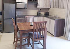 Suite 1 is furnished with a Queen-size bed. The en-suite bathroom is fitted with a shower, toilet and basin. The suite offers a private kitchen with induction stove, air-conditioning, a TV with DStv and Wi-Fi access. Guests have access to a communal kitchen and guest lounge.