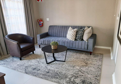 Suite 2 is furnished with a Queen-size bed and a sleeper couch is available. The en-suite bathroom is fitted with a shower, toilet and basin. The suite offers a private kitchen with induction stove, air-conditioning, a TV with DStv and Wi-Fi access. Guests have access to a communal kitchen and guest lounge.