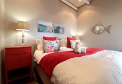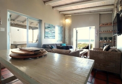 Lekkerlag accommodates up to six guests and enjoys beautiful sea and beach views. Lekkerlag is a self catering holiday home with three bedrooms. The main bedroom has a Double bed and an en-suite bathroom with a shower, basin and toilet. The second and third bedrooms each have two single beds. These rooms share a bathroom with a bath, shower, toilet and basin. The kitchen is fully equipped and has a stove, oven, fridge / freezer, microwave and other small appliances. It also has a centre island for food preparation. The lounge area has comfortable furniture and a flat screen TV with full DStv package. Double doors open out onto a covered patio with outdoor furniture, a built in braai and stunning views.