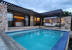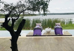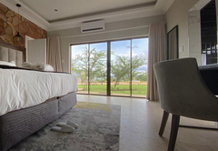 Beautiful Dam Facing 2 Bedroom Presidential Villa that sleeps 4. The Villa rooms are furnished with King-size beds and has a full en-suite bathroom fitted with a bath, shower, toilet and basin. There is a large lounge, dining and fully equipped kitchen. Outdoor there is a patio with a private pool and a private Boma.