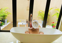 This villa sleeps two guests in an extra length King-size bed and has an en-suite bathroom with a bath and shower. There is also an outside shower. There is a separate lounge with a TV which has satellite channels. The villas have tea / coffee making facilities and a patio. In-room spa treatments, and a mini-bar stocked with your choice of beverages and snacks can be provided by arrangement.