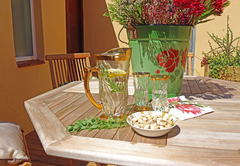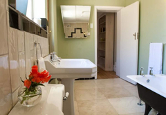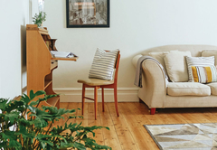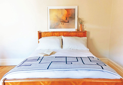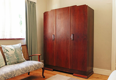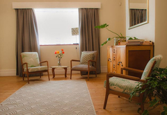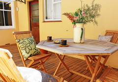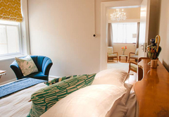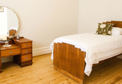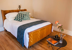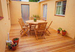Lizmi Cottage has three double bedrooms and two bathrooms, one with a shower and the other Art Deco en-suite bathroom with free-standing bath and shower. The kitchen is fully equipped with Smeg and Grundig appliances for self catering and includes a dishwasher and washing machine. The comfortably furnished living area has classic mid-century furniture. High speed internet is included. The Cottage has off-street parking and a beautiful, decked private courtyard.