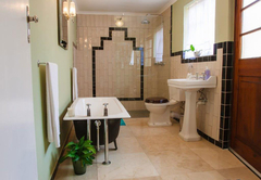 Das Lizmi Cottage verfügt über drei Doppelzimmer und zwei Badezimmer, eines mit Dusche und das andere mit Art-Deco-Bad mit freistehender Badewanne und Dusche.