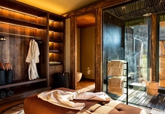 Loapi One Bedroom Tented Safari Home is a spacious tented bedroom suite with indoor and outdoor showers. Plenty of shaded outdoor space for dining, and daybeds for relaxing and game viewing. Plunge pool and fire pit. In-room spa treatments.