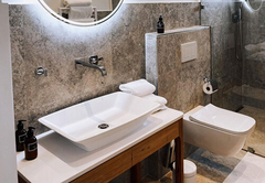 Sister room to Appia, Flaminia exudes a sophisticated yet tranquil ambiance. Flaminia is situated upstairs with a balcony to step out onto to admire the stunning South African sunsets. The room is furnished with a King-size bed and a bathroom fitted with a shower, toilet and basin. All rooms are individually and exquisitely finished with impeccable attention to detail. Breakfast is served daily in the Manor House with additional meals prepared by private chef on request (extra cost). The bathrooms have beautiful finishes and kitted with luxury amenities. Enjoy mod cons including WiFi, flat screen TV, Nespresso machine and mini bar stocked with complimentary soft drinks.