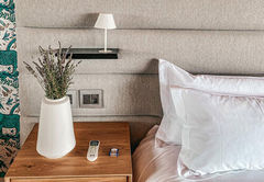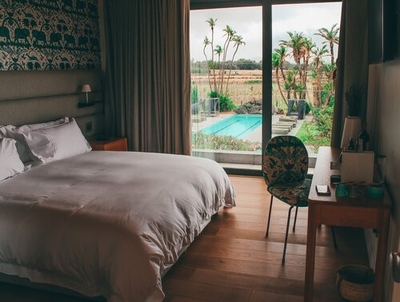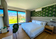 Sophisticated and glamourous best describes Salaria's captivating personality. Salaria is located downstairs in the Manor House and offers direct access to the pool and lush sprawling gardens. The room is furnished with a King-size bed and a bathroom fitted with a shower, toilet and basin. All rooms are individually and exquisitely finished with impeccable attention to detail. Breakfast is served daily in the Manor House with additional meals prepared by private chef on request (extra cost). The bathrooms have beautiful finishes and kitted with luxury amenities. Enjoy mod cons including WiFi, flat screen TV, Nespresso machine and mini bar stocked with complimentary soft drinks.