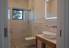 Cassia's personality has a gentle and whimsical feel with the theme of a nimble and elegant serval. Cassia is located downstairs with direct pool and garden access offering views of glorious wide open space and citrus trees. The room is furnished with a King-size bed and a bathroom fitted with a shower, toilet and basin. All rooms are individually and exquisitely finished with impeccable attention to detail. Breakfast is served daily in the Manor House with additional meals prepared by private chef on request (extra cost). The bathrooms have beautiful finishes and kitted with luxury amenities. Enjoy mod cons including WiFi, flat screen TV, Nespresso machine and mini bar stocked with complimentary soft drinks.