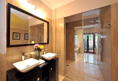 Two bedrooms each with 2 x three-quarter beds (convertible to king on request). En-suite bathrooms with bath and shower. Large area that incorporates a well equipped kitchen, dining area and lounge with DSTV. Patio with built in braai and sweeping views.