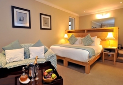 Luxury Room heated by a gas fire and offers either two three-quarter beds or converted to offer a king size bed. En-suite bathroom with bath and shower. Views overlooking the Lidgetton Valley and Roman Style Herb Garden.