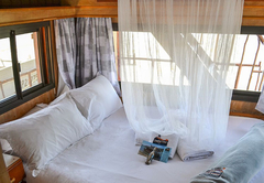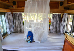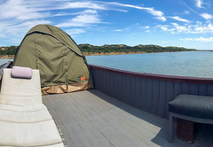 The houseboat is able to accommodate six guests in one bedroom and two sleeper couches. The main bedroom has a double bed and the sleeper couch is King-size. A small toilet and shower is also featured but guests are welcome to use the bathroom facilities in the crew's premises. Bed linen is provided and guests can enjoy free Wi-Fi. There is a semi equipped kitchenette with a microwave, a fridge and a stove. The boat is moored next to our premises which is close to the highway so there could be some noise but mostly it's quiet.
